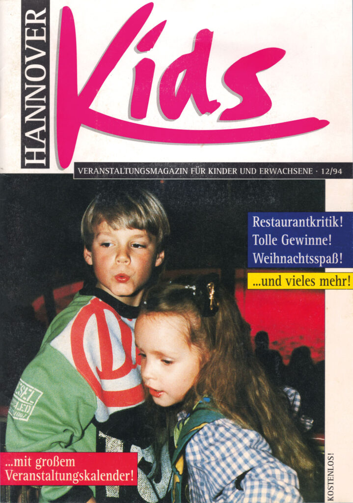 Die Idee, ein Veranstaltungsmagazin für Familien herauszugeben, entstand in einem kleinen Lindener Stadtteilladen vor mehr als 30 Jahren. Mit jeder Menge Engagement und Motivation gelang es am 1.12.1994 die erste Hannover Kids herauszugeben. Seitdem bekommen die Familien in der Region Hannover Monat für Monat ein eigenes buntes Veranstaltungsmagazin geschenkt, mit dem sie perfekt die Freizeit, gemeinsame Wochenenden und auch den Alltag planen können. Der Veranstaltungskalender ist bis heute das Herzstück jeder Ausgabe. Das Spektrum der Inhalte ist vielseitig: Gesundheit, Bildung, Freizeit, Reisen, Sport, Stadtneuigkeiten, Kreatives und Kaufinformationen. Beliebt ist von Anfang an der Hannover-Kids Restauranttest. Dabei geht es nicht um Sterneküche, sondern darum, wie kinderfreundlich ein Restaurant tatsächlich ist.